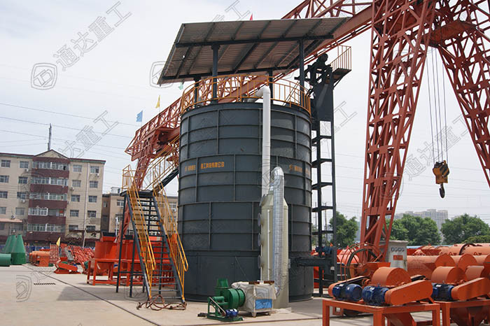 有機肥發(fā)酵罐備主要由發(fā)酵室、上料提升系統(tǒng)、高壓送風系統(tǒng)、主軸傳動系統(tǒng)、液壓動力系統(tǒng)、自動出料系統(tǒng)、除臭系統(tǒng)和自動控制系統(tǒng)組成。工藝流程包含:混料調(diào)質、上料、好氧發(fā)酵、自動放料四個過程。